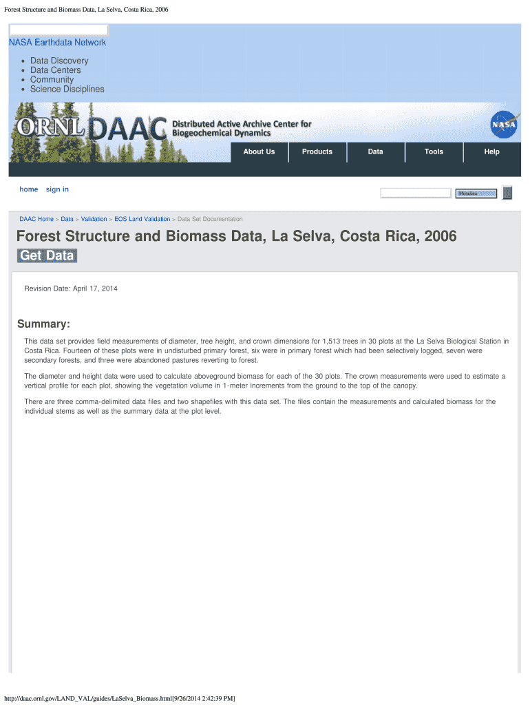 Get the free Forest Structure and Biomass Data La Selva Costa bb - ORNL DAAC - daac ornl