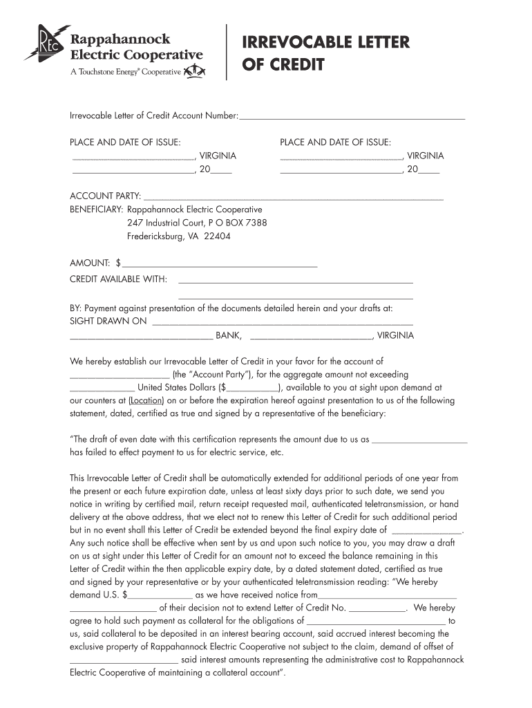 Get the free Irrevocable letter of credit - Rappahannock Electric Cooperative
