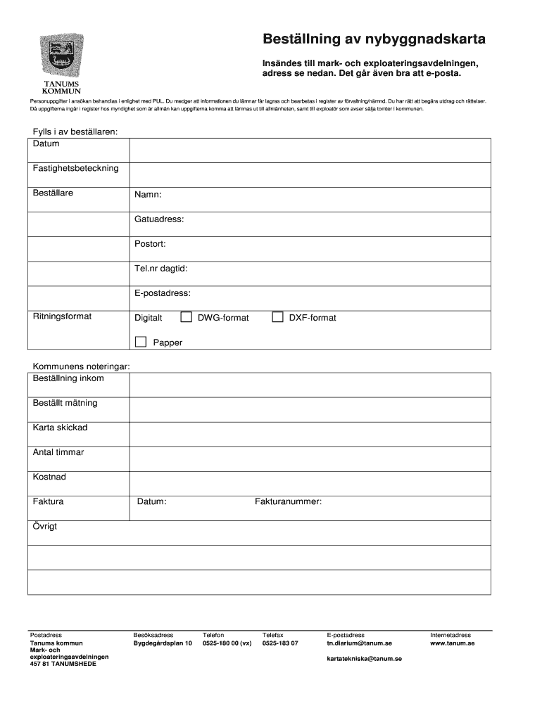 Get the free Bestllning av nybyggnadskarta - Tanums kommun - slottet