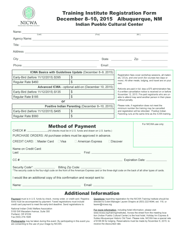 Get the free Training Institute Registration bFormb December 810 b2015b bb - nicwa