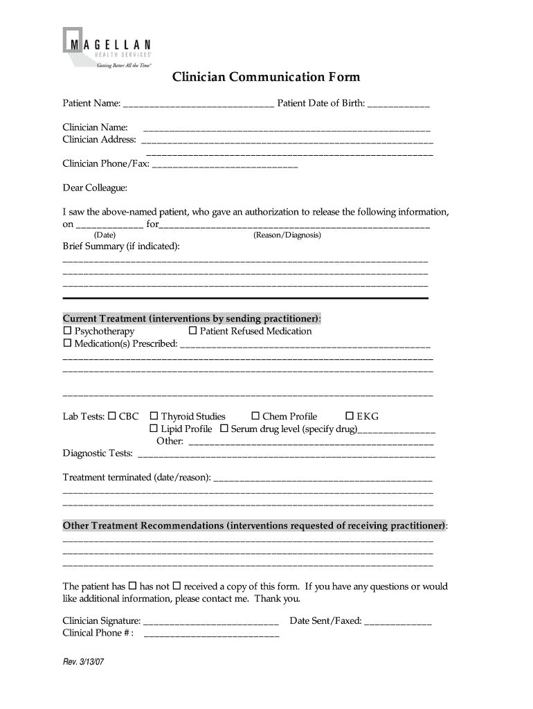 Clinician Communication Form is not the form you're looking for?Search for another form here.