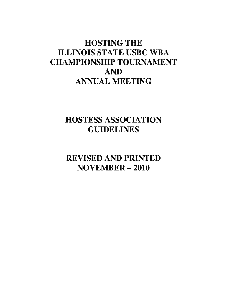 HOSTING THE ILLINOIS STATE USB WBA CHAMPIONSHIP TOURNAMENT AND ANNUAL MEETING HOSTESS ASSOCIATION GUIDELINES REVISED AND PRINTED NOVEMBER 2010 LOCAL ASSOCIATION REQUIREMENTS AND DIRECTIVES FOR HOSTING