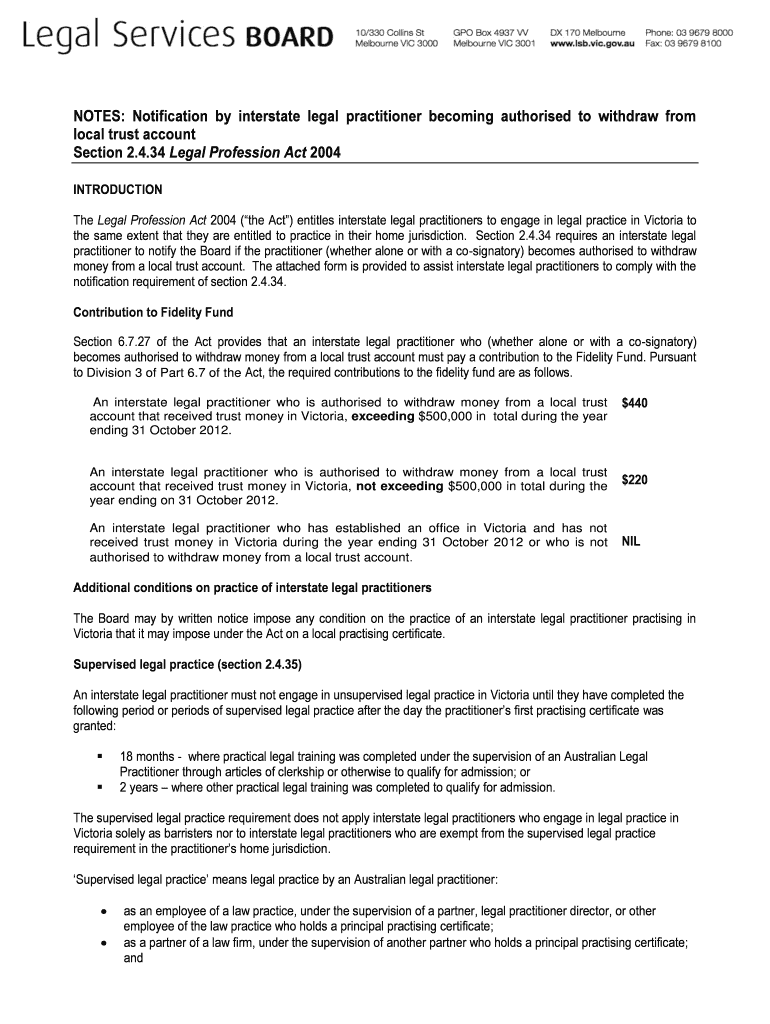 Get the free NOTES Notification by interstate legal practitioner becoming bb - lsbc vic gov