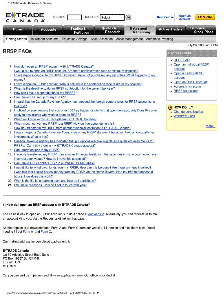 How to fill out etrade canada - retirement