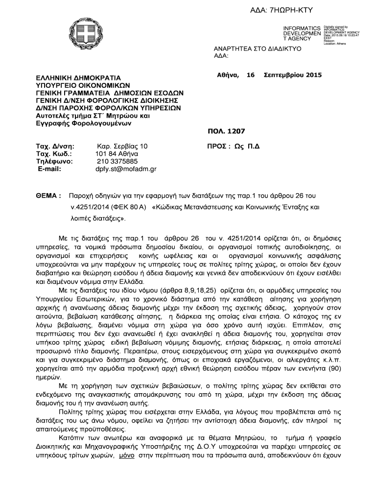 7 INFORMATICS DEVELOPMENT T AGENCY Digitally signed by INFORMATICS DEVELOPMENT AGENCY Date: 2015.09.18 10:23:47 BEST Reason: Location: Athens : / / /