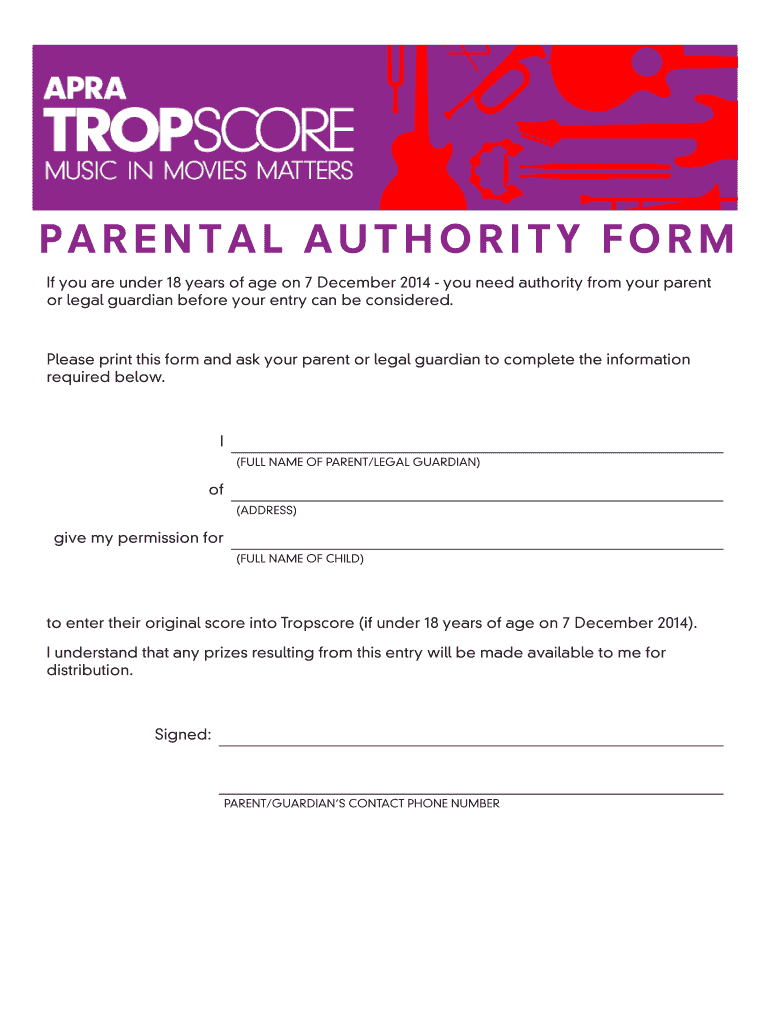 Get the free PARENTAL AUTHORITY FORM - apra amcos