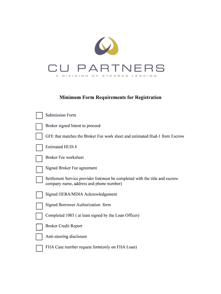 Get the free Minimum Form Requirements for Registration - CU Partners