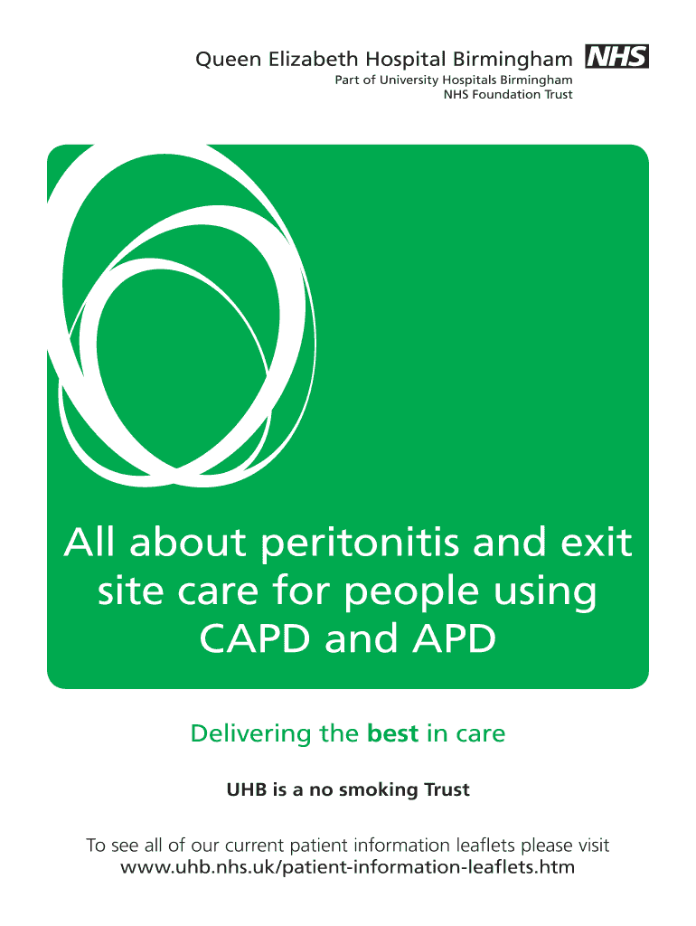 All about peritonitis and exit site care for people using CARD and APD Delivering the best in care UHF is a no smoking Trust To see all of our current patient information leaders please visit www.uhb.nhs.uk/patientinformationleaflets.htmIntroduction