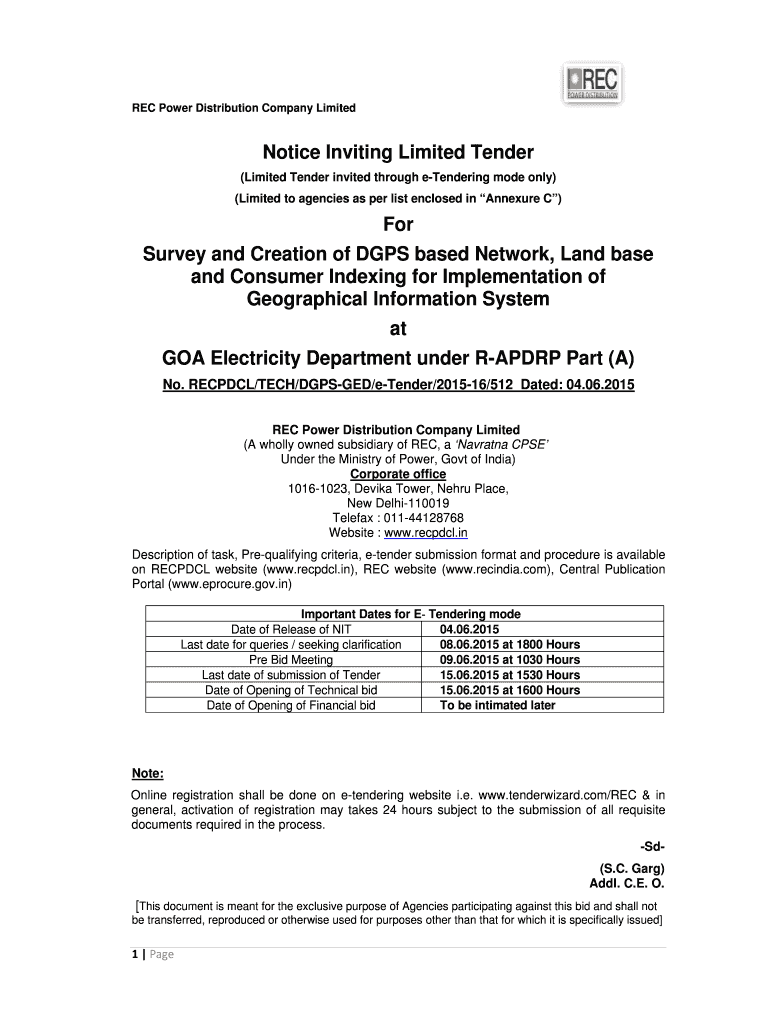 Get the free Notice Inviting Limited Tender For Survey and Creation of DGPS - recpdcl