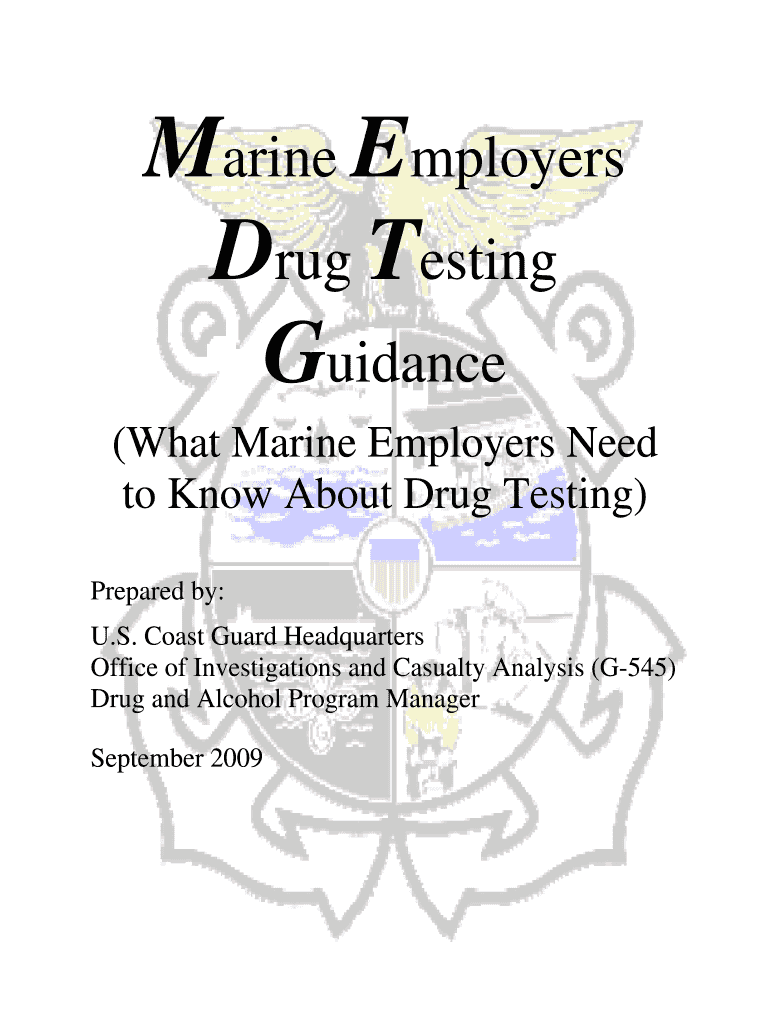 Marine Employers Drug Testing Guidance (What Marine Employers Need to Know About Drug Testing) Prepared by: U.S. Coast Guard Headquarters Office of Investigations and Casualty Analysis (G-545) Drug