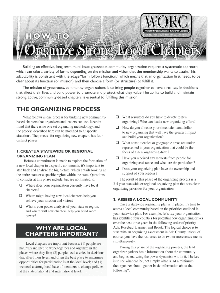 Building an effective, long term multi issue grassroots community organization requires a systematic approach,