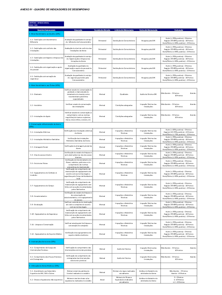 Get the free ANEXO I.6 QUADRO DE INDICADORES DE DESEMPENHO - Rio de Janeiro