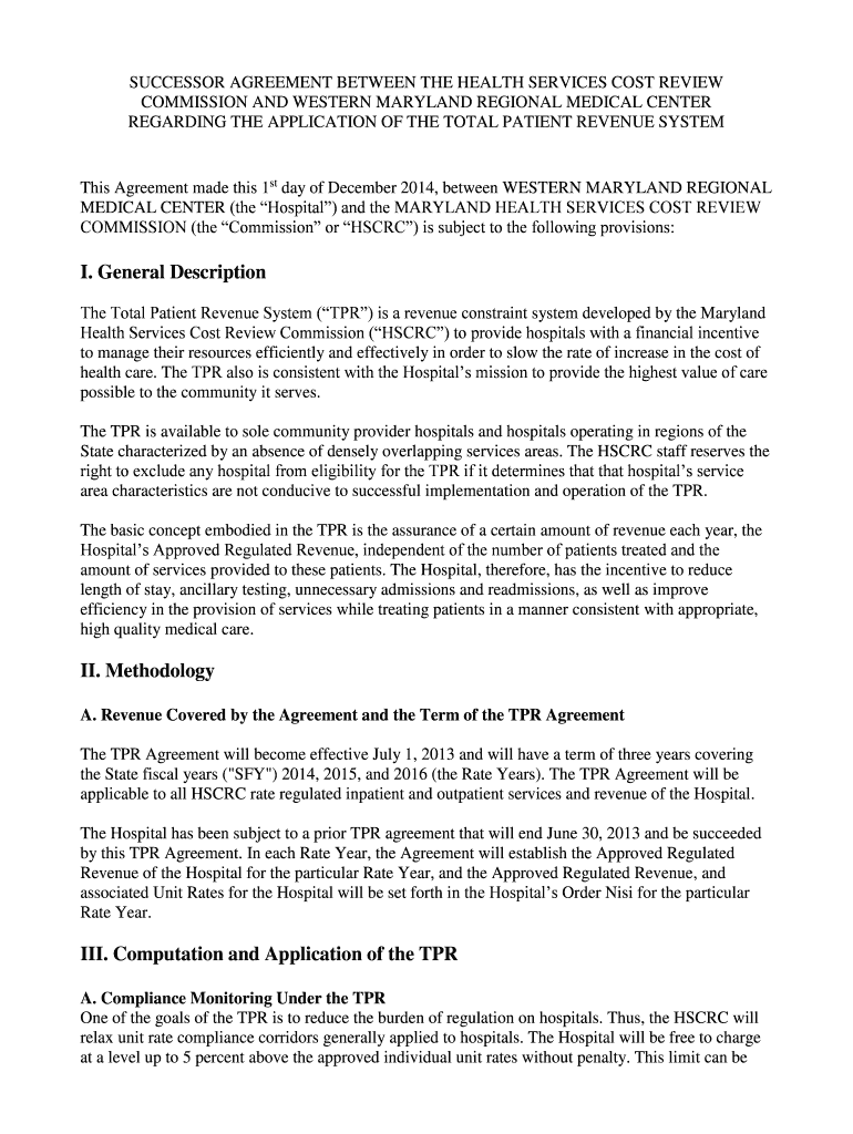 SUCCESSOR AGREEMENT BETWEEN THE HEALTH SERVICES COST REVIEW COMMISSION AND WESTERN MARYLAND REGIONAL MEDICAL CENTER REGARDING THE APPLICATION OF THE TOTAL PATIENT REVENUE SYSTEM This Agreement made