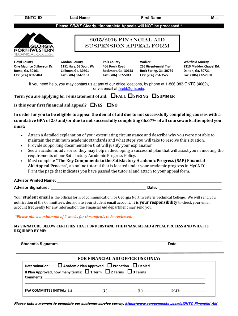 Get the free Financial Aid Suspension Appeal bFormsb - Georgia Northwestern bb - gntc