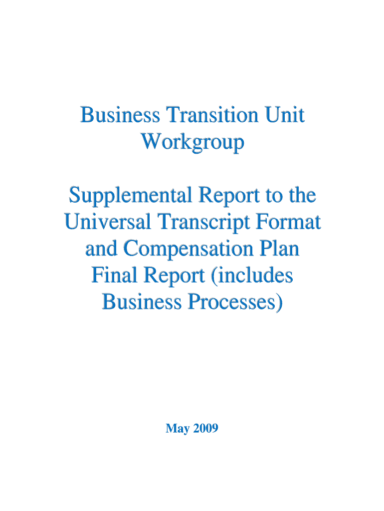 Business Transition Unit Workgroup Supplemental Report to the Universal Transcript Format and Compensation Plan Final Report (includes Business Processes) May 2009 Business Transition Unit (BTU) Workgroup