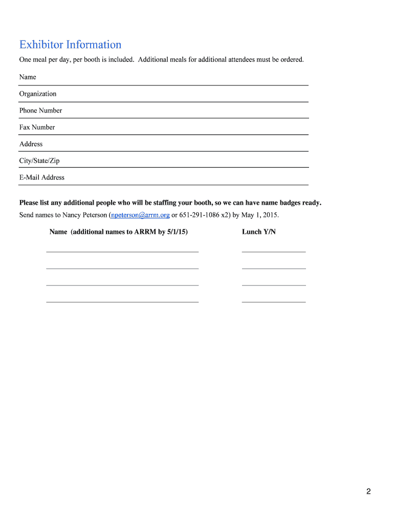 2015 ARM Annual Conference Exhibitor Registration & Advertising Form May 1314, 2015 Doublet by Hilton in Bloomington Instructions 1) Complete pages 2, 3, and 4 with payment and submit them: a. BY