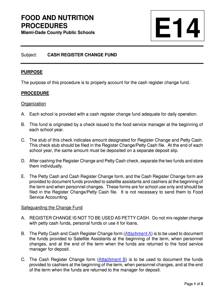 Miami-Dade County Public SchoolsSubject:E14CASH REGISTER CHANGE FUNDPURPOSE