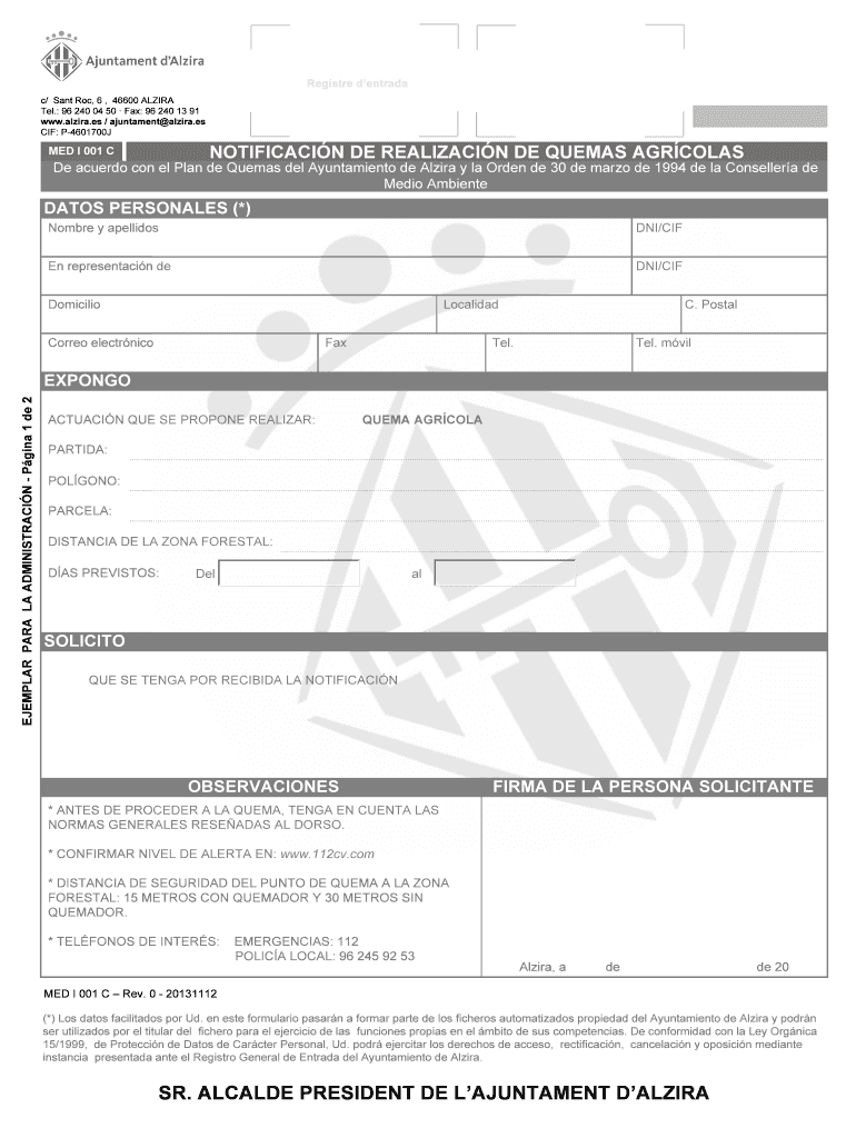 Obtener el gratis Notificacin de realizacin de quemas agrcolas - Ajuntament dAlzira - alzira