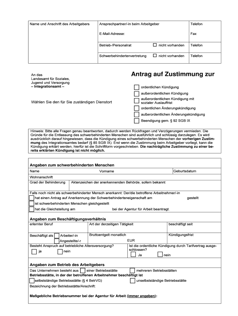 Wie kann ich die Zustimmung zur Kündigung eines schwerbehinderten Menschen beantragen?