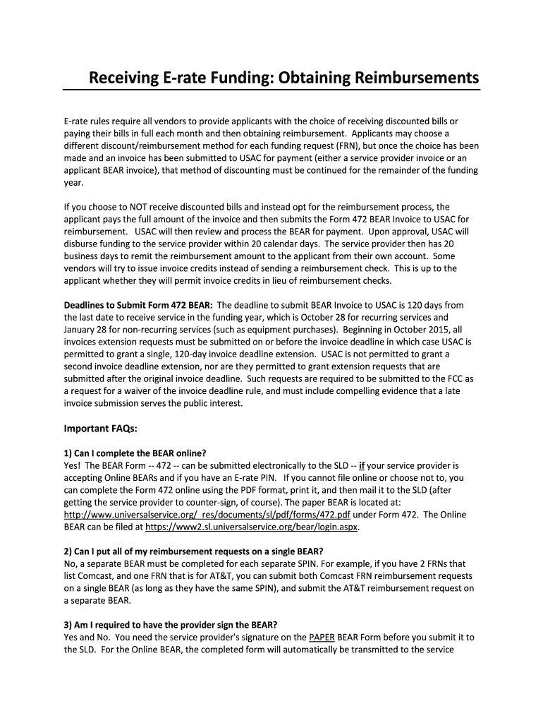 Get the free BEAR Reimbursements Form 472 - E-rate in Pennsylvania - e-ratepa