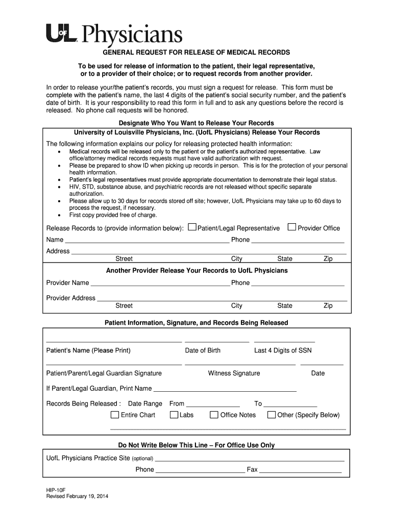 Get the free GENERAL REQUEST FOR RELEASE OF - UofL Physicians