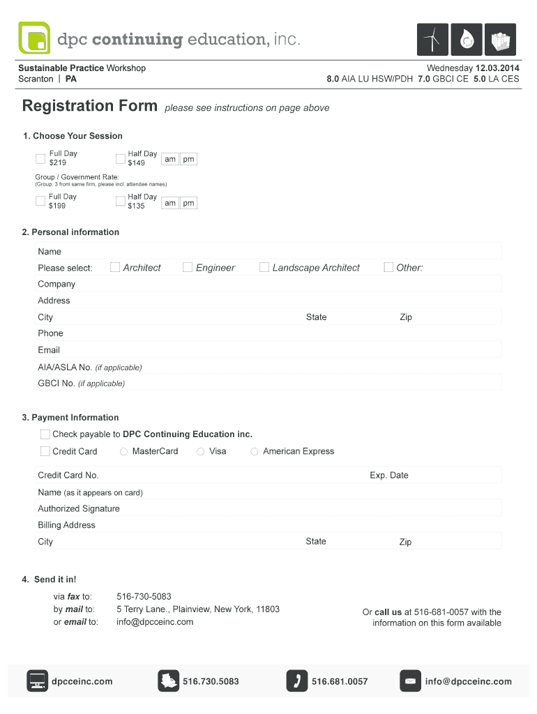 Sustainable Practice Workshop Scranton PA Wednesday 12.03.2014 8.0 AIR LU HOW/PDH 7.0 GBC ICE 5.0 LA CES How to submit the Registration Form: (Because saving it in the browser will lose the information.