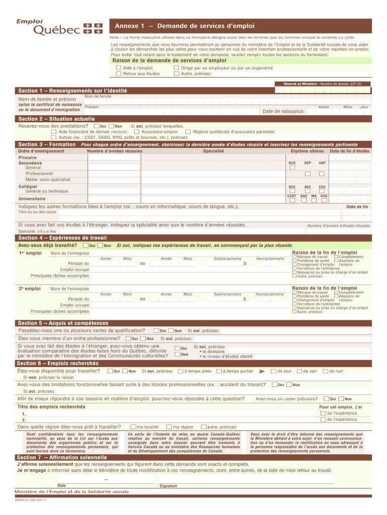 Obtenir le gratuit Annexe 1 Demande de services demploi - chumontreal qc