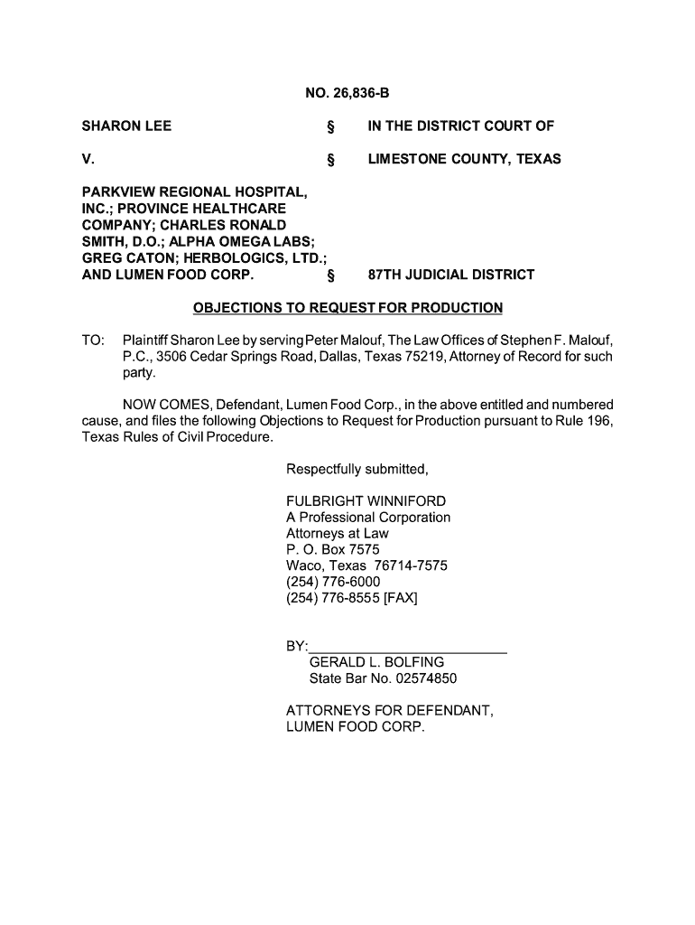 Get the free Objections to Request for Production - Meditopia