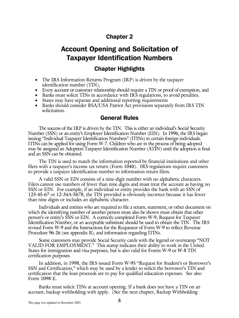 This guide presents detailed insights into the regulations surrounding TIN requests. It specifies the correct usage of Form W-9, which is instrumental in the collection of SSNs and EINs.