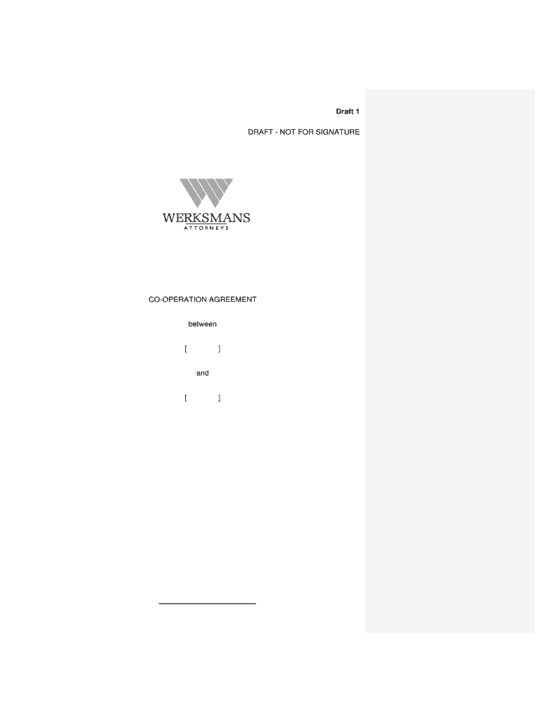 Draft 1 DRAFT NOT FOR SIGNATURECOOPERATION AGREEMENT between and RH/Rh, tn 010714/SOUT0701.3 C:UsersTiaan MorkelAppDataLocalTempAssociation agreement (draft contract 4 DRS) 4DA34E.doc (1d)DRAFT NOT