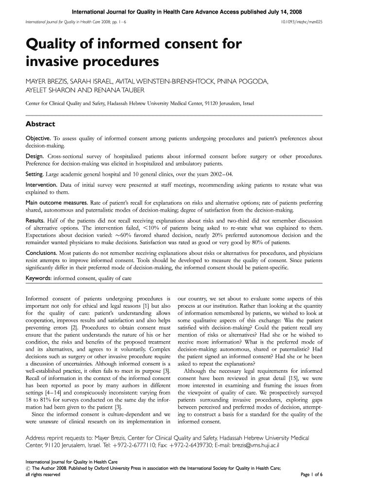International Journal for Quality in Health Care 2008; pp. 1 610.1093/intqhc/mzn025Quality of informed consent