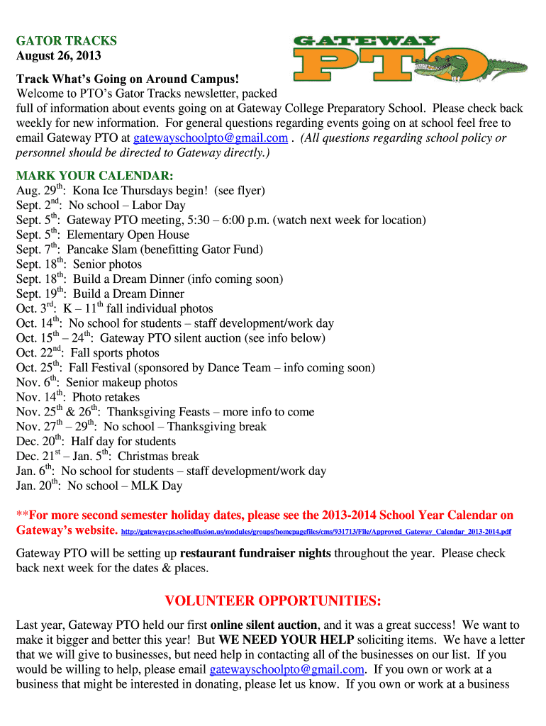 Welcome to PTO's Gator Tracks newsletter, packed