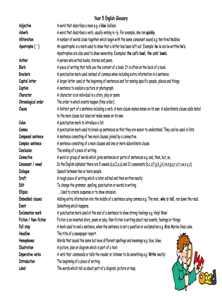 Edit your year 5 english glossary form online