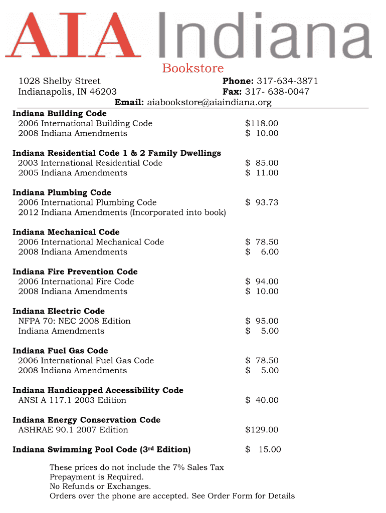 Bookstore 1028 Shelby Street Phone: 3176343871 Indianapolis, IN 46203 Fax: 317 6380047 Email: bookstore Indiana.org Indiana Building Code 2006 International Building Code 2008 Indiana Amendments $$118.00