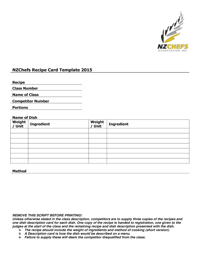 The nzchefs recipe card template is a standardized format for documenting and sharing recipes in the culinary industry.
