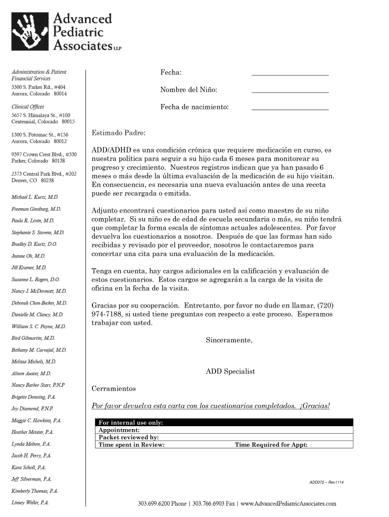 Get the free Nombre del Nio - Advanced Pediatric Associates