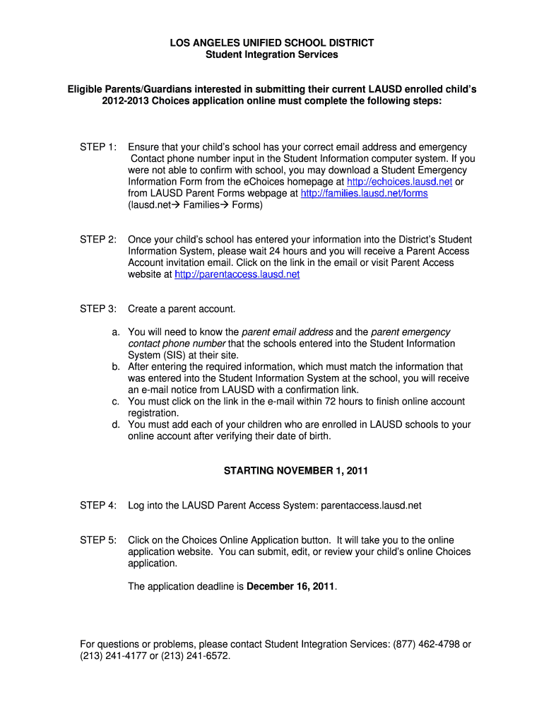 Get the free Eligible Parents/Guardians interested in submitting their current LAUSD enrolled childs