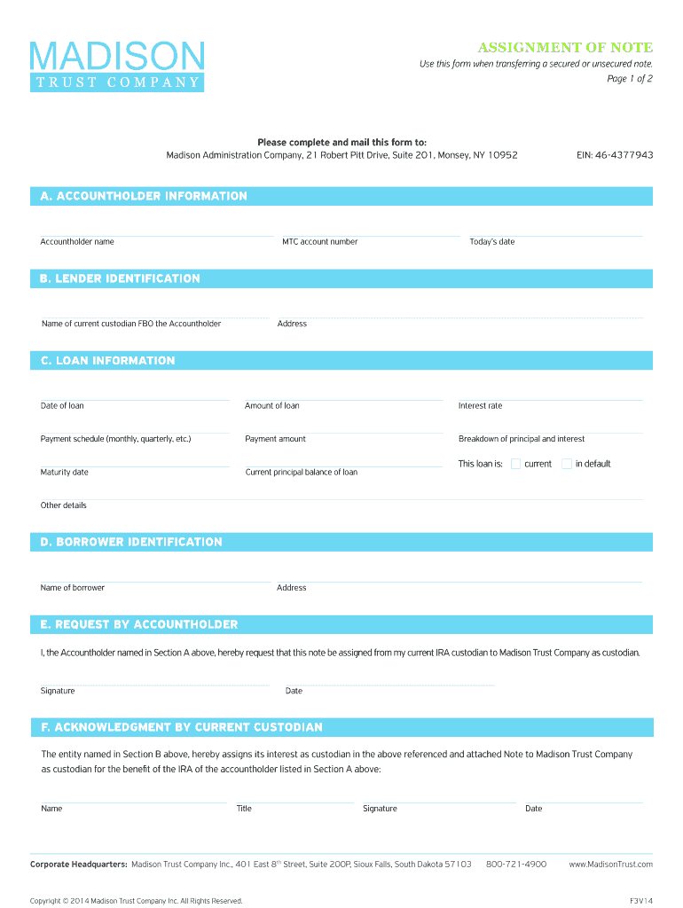Get the free TRUST COMPANY ASSIGNMENT OF NOTE - Madison Trust