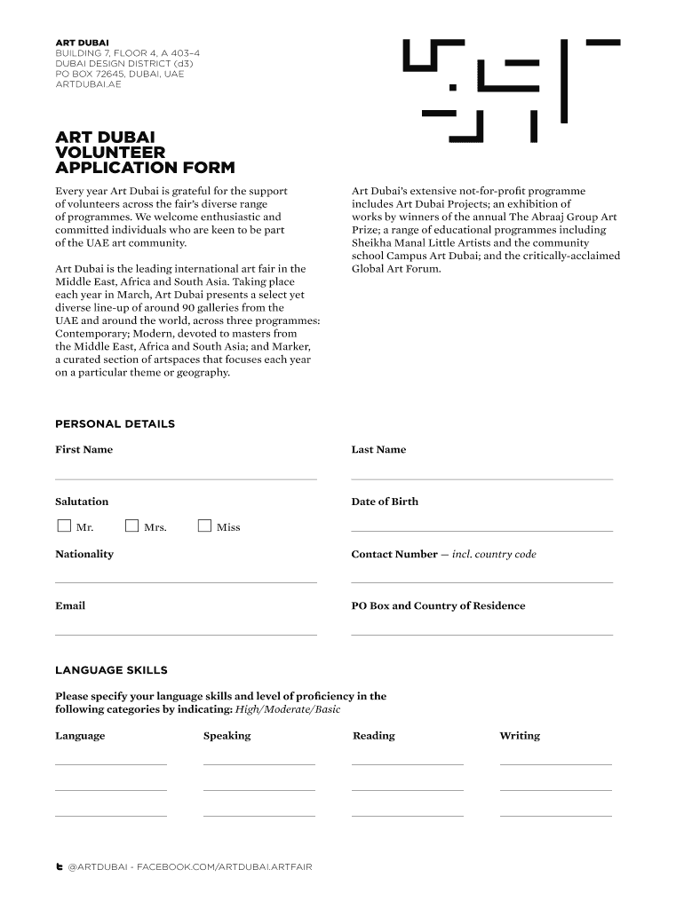 Get the free ART DUBAI VOLUNTEER APPLICATION FORM - artdubai