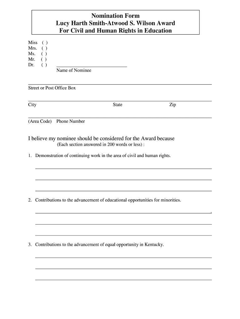 Get the free Nomination bFormb Lucy Harth Smith-Atwood S Wilson Award For bb - kea