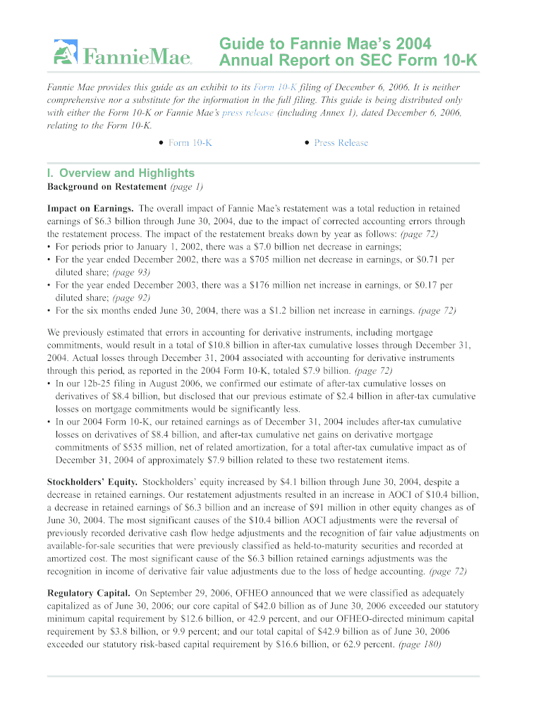 Get the free Guide to Fannie Mae's 2004 Annual Report on SEC Form 10-K