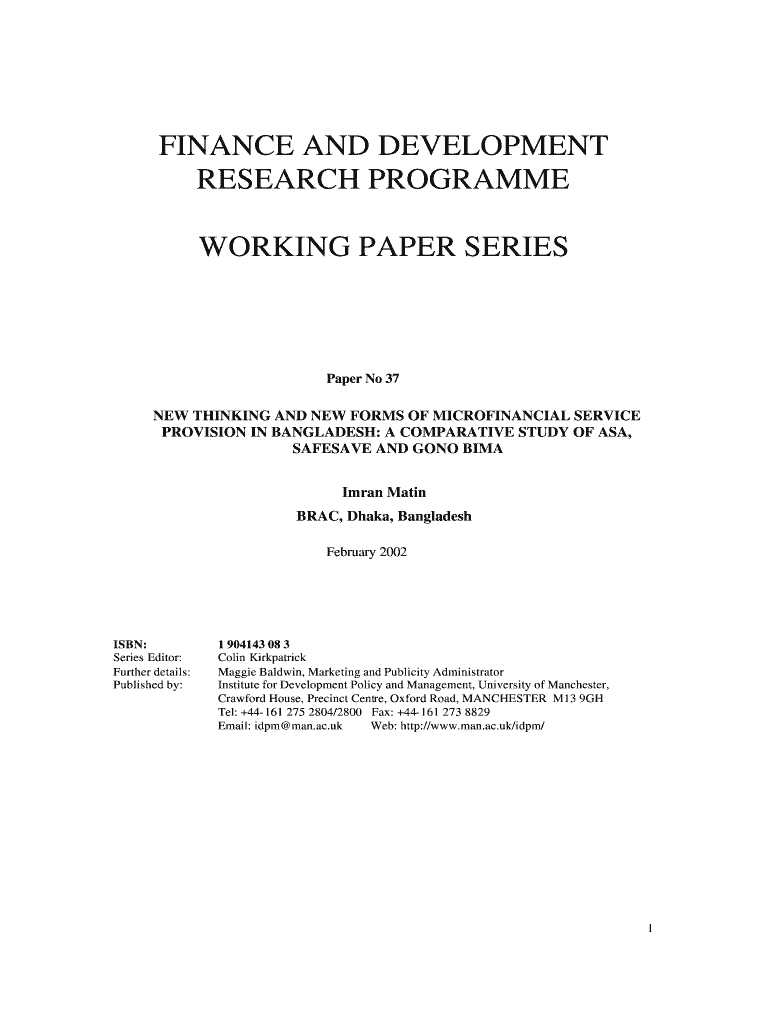 Paper No 37. NEW THINKING AND NEW FORMS OF MICROFINANCE SERVICE. PROVISION IN ...... applying to micro borrowers. Typically, most microcredit ...