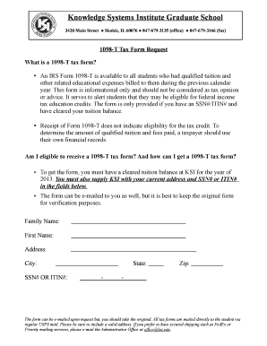 1098-T Tuition Statement – for reporting tuition payments