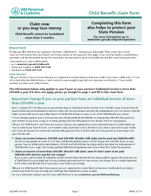 The Child Benefit Claim Form is a document used to apply for financial assistance provided by the government to help with the cost of raising a child. It is a way for parents or guardians to claim benefits such as Child Benefit and Child Tax Credit.
