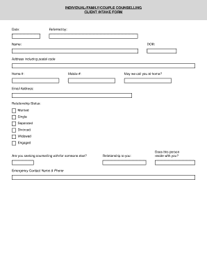 Counseling Client Intake Forms: Mental health professionals use these forms to collect information about clients' mental health history, symptoms, and treatment goals.