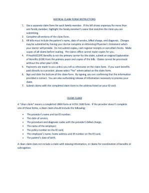 A Medical Claim Form is a document that is used by healthcare providers and patients to file for reimbursement of medical expenses. It includes important information about the patient, the healthcare provider, the treatments received, and the costs incurred. The form is usually submitted to the insurance company or the government agency responsible for handling medical claims.
