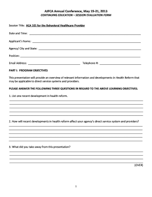Completing conference evaluation form templates is easy and straightforward. Follow these steps to provide valuable feedback: 1. Start by filling out personal information (optional) 2. Rate the various aspects of the conference, such as speakers, sessions, and organization 3. Provide detailed comments on what you liked and areas for improvement 4. Submit the form online or return it to the organizers.