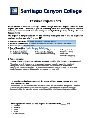 A Project resource request is a formal document used to request additional resources for a specific project. These resources could include manpower, equipment, funding, or any other necessary tools needed to successfully complete the project.