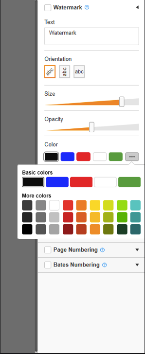 Add color watermarks for better document differentiation. Make use of the palette to choose from a variety of colors.